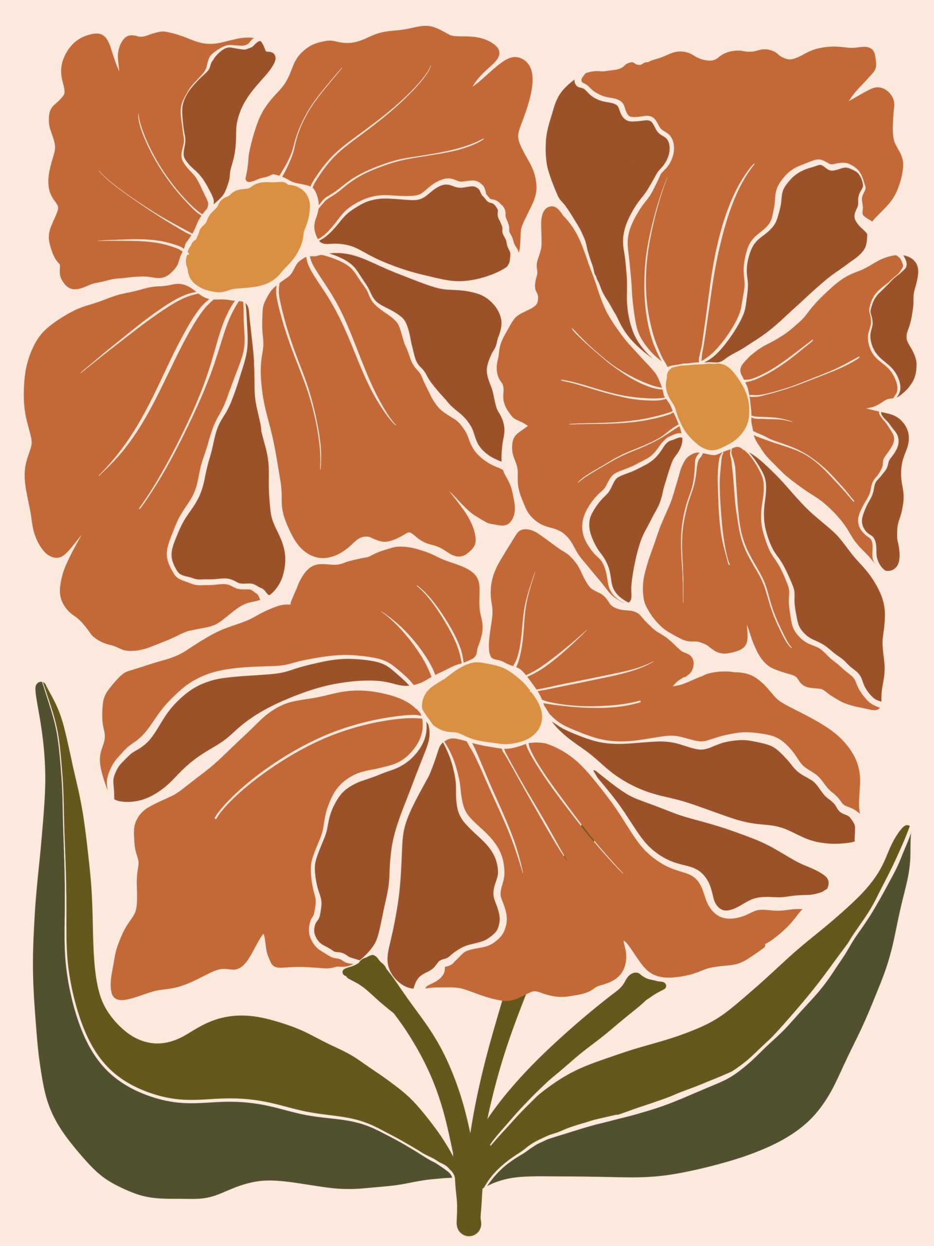 Celebra la belleza natural y los tonos cálidos con esta lámina artística de flores en tonos terracota y hojas verdes. Su estilo orgánico y minimalista es perfecto para aportar vida, calidez y elegancia a cualquier espacio. Ideal para decoraciones boho, rústicas o contemporáneas que buscan un toque de naturaleza en su diseño interior.
